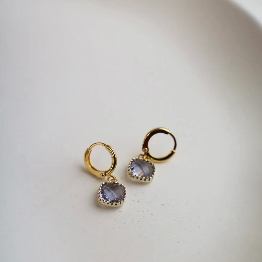 Petite square lavender huggie with textured edges. The perfect gift for a bridesmaid, friend, mother or daughter or a self-love gift. Material 14k plated Gold.